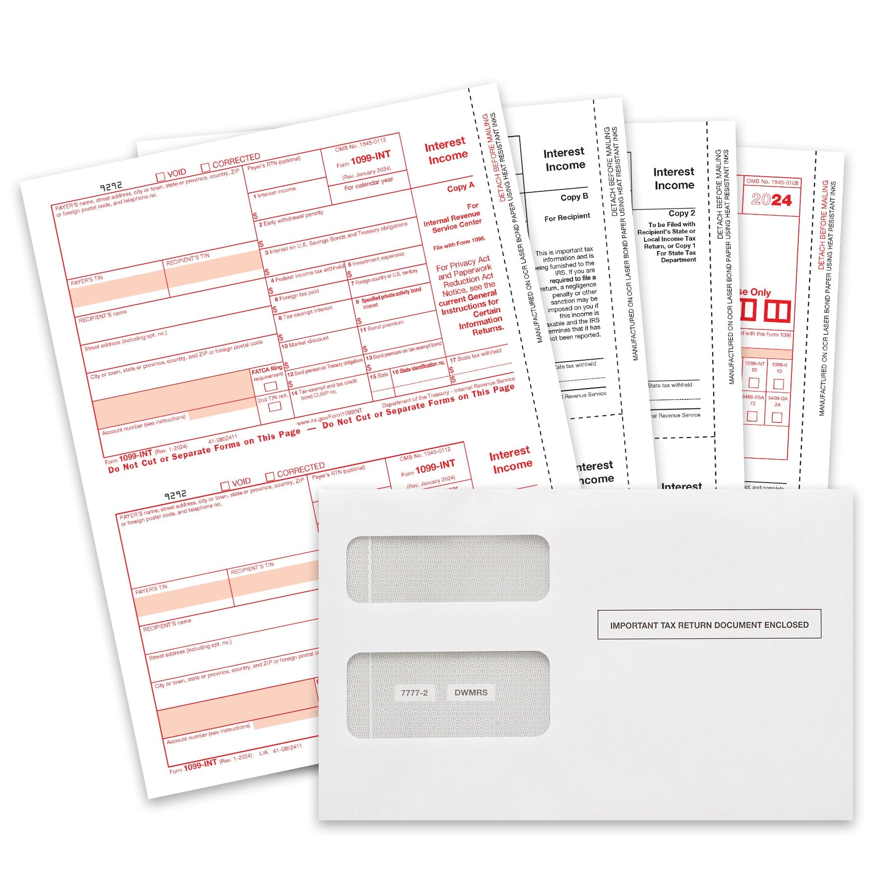 2024 Blue Summit Supplies Tax Forms, 1099 INT 4 Part Tax Forms Bundle with Seal Seal Envelopes, 25-Count