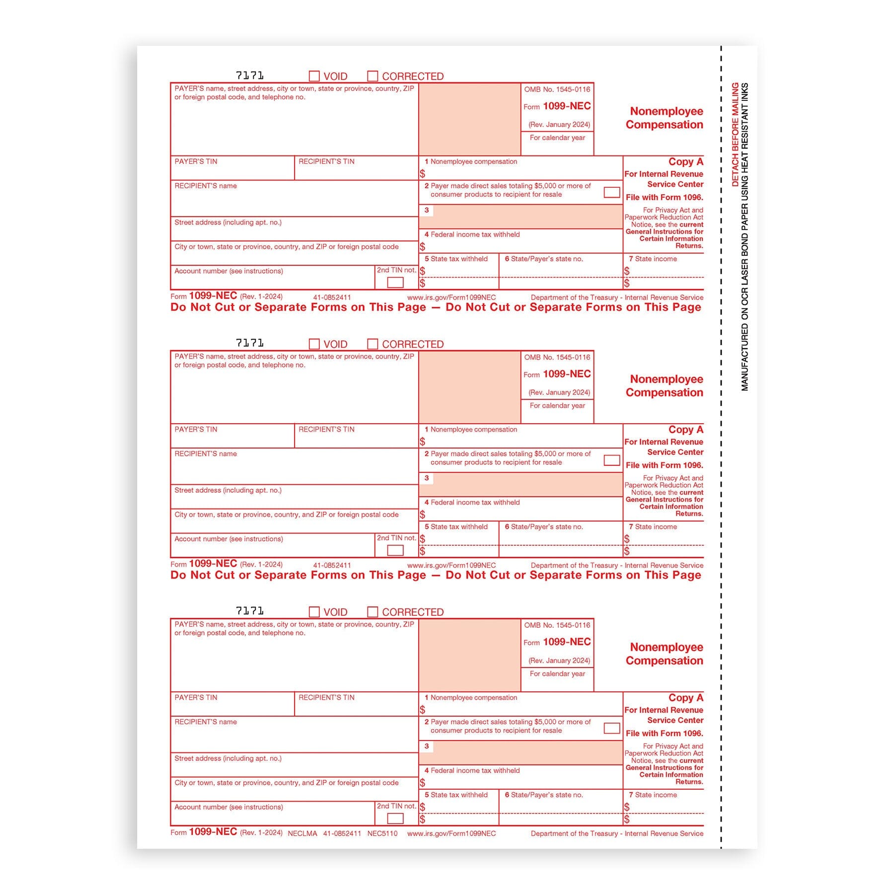 - 13 1099-NEC Copy A Forms (2 forms per sheet)