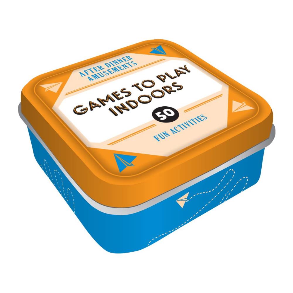 Fill your home with the fun activities in this handy little tin of Games to Play Indoors !